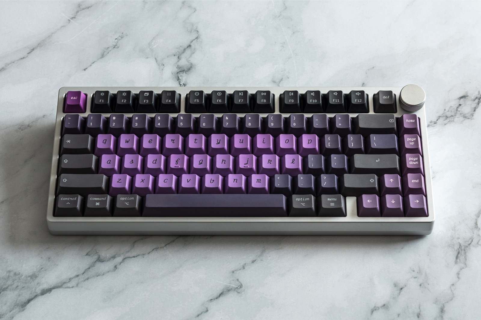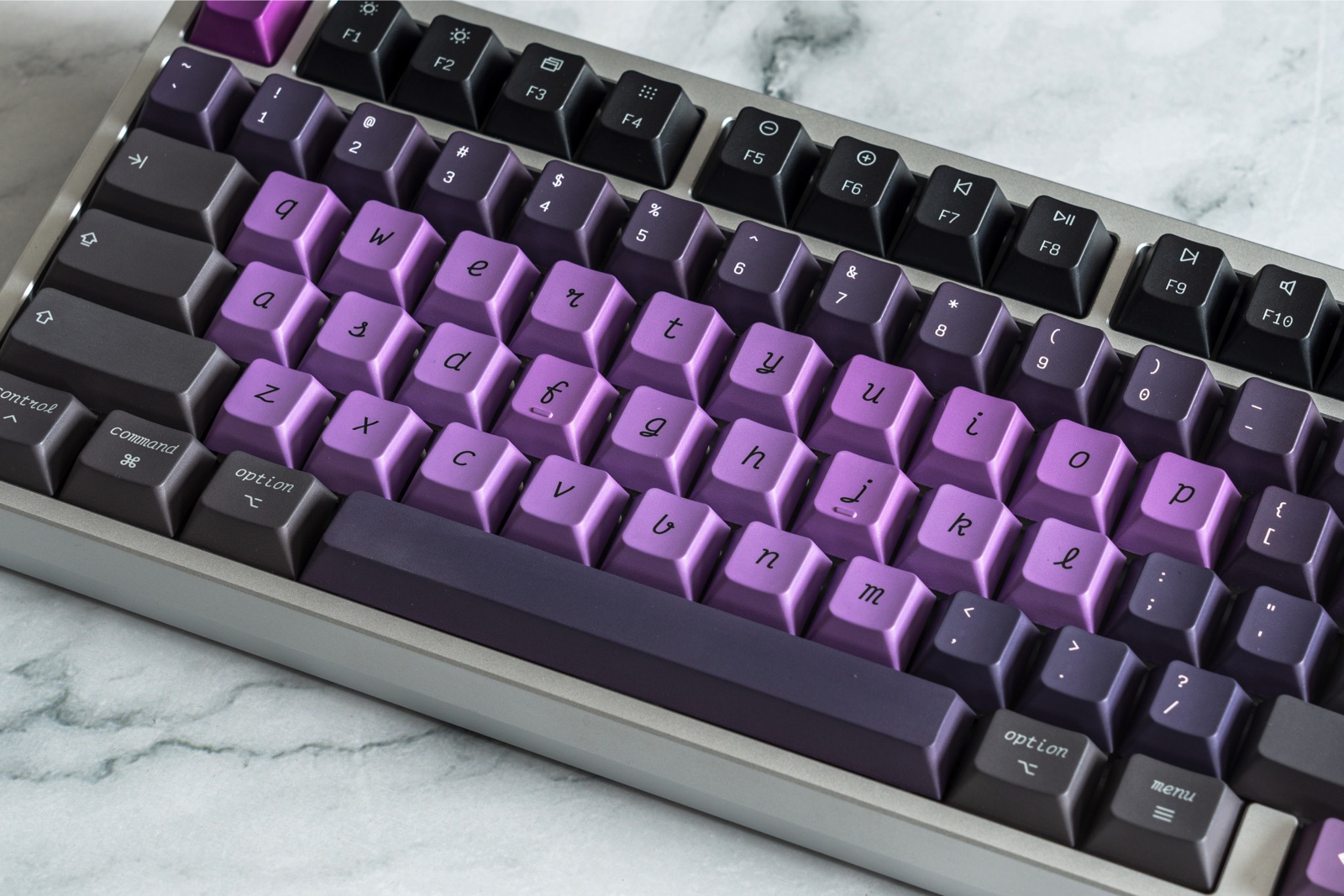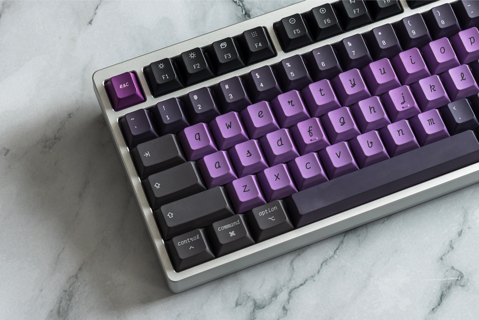 Designed with my own open-source font for programming, Victor Mono (https://rubjo.github.io/victor-mono/). Inspired by the colours of nightshade flowers, featuring prominent letters along with muted purples and greys.