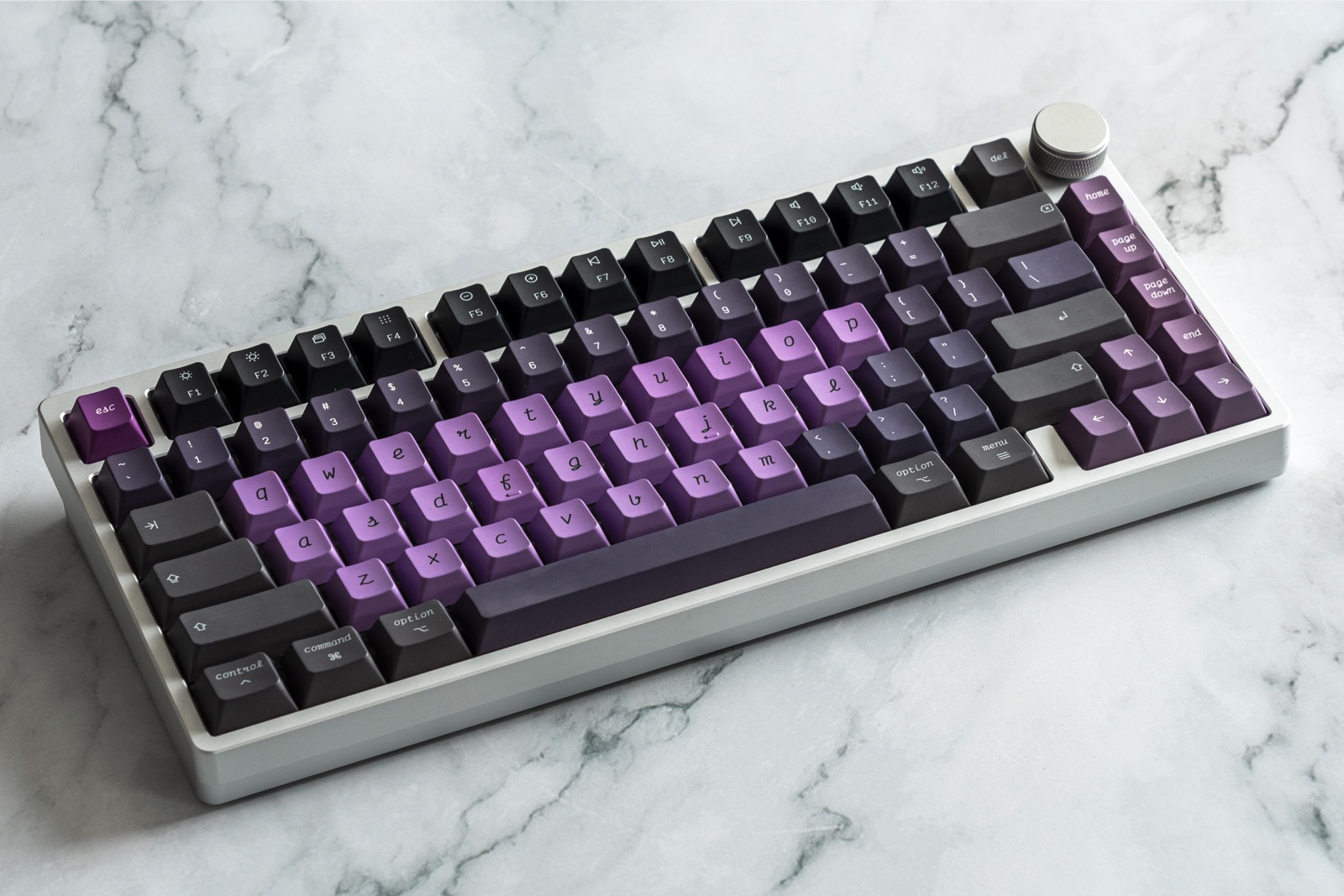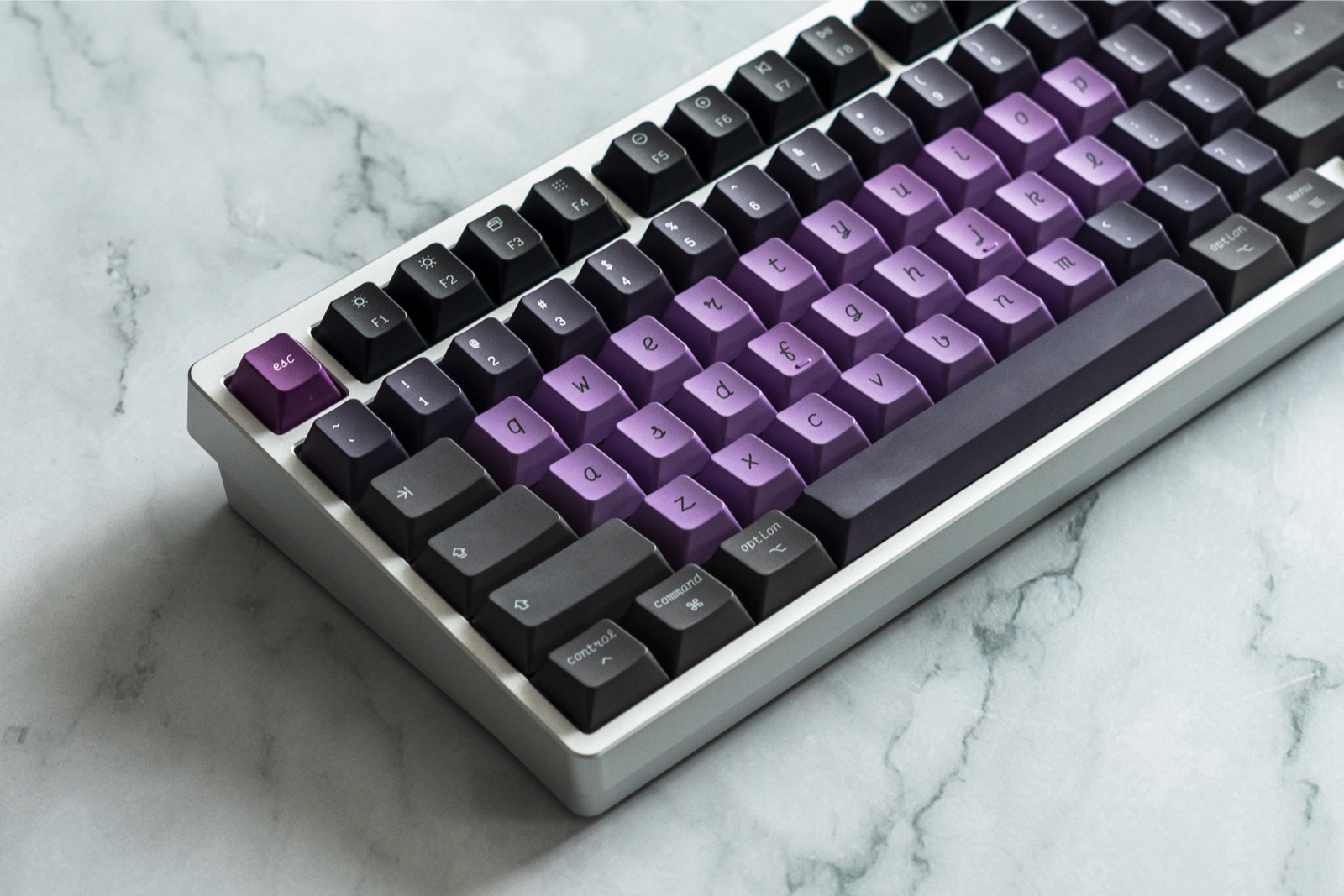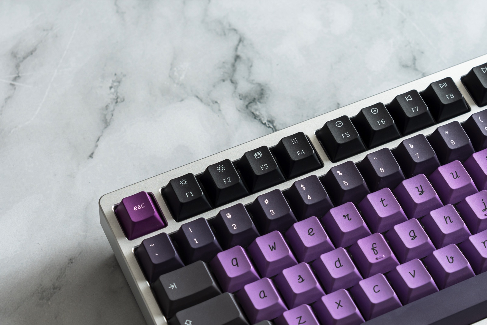 Designed with my own open-source font for programming, Victor Mono (https://rubjo.github.io/victor-mono/). Inspired by the colours of nightshade flowers, featuring prominent letters along with muted purples and greys.