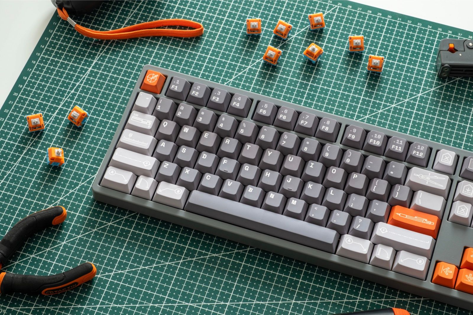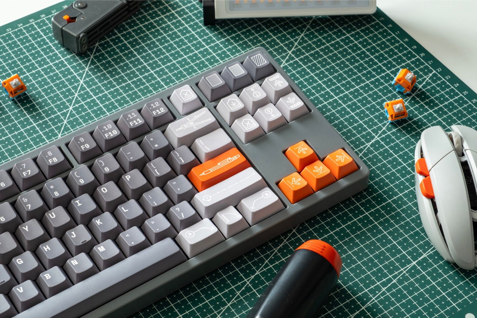 This project is a fusion between two worlds I'm passionate about: architecture and mechanical keyboards. Each keycap is a piece that carries within it a technical and visual language; a tribute to tools, pure design, and the pleasure of creating with one's hands.