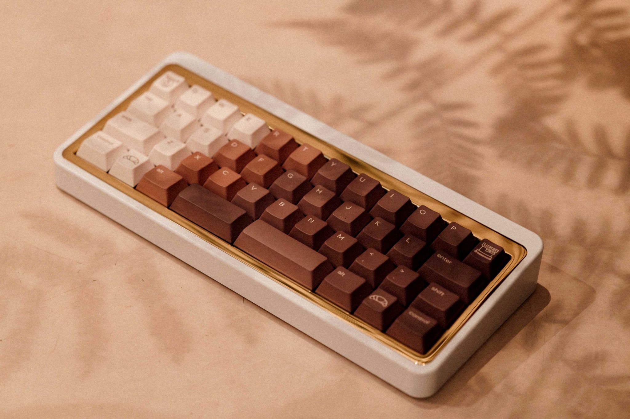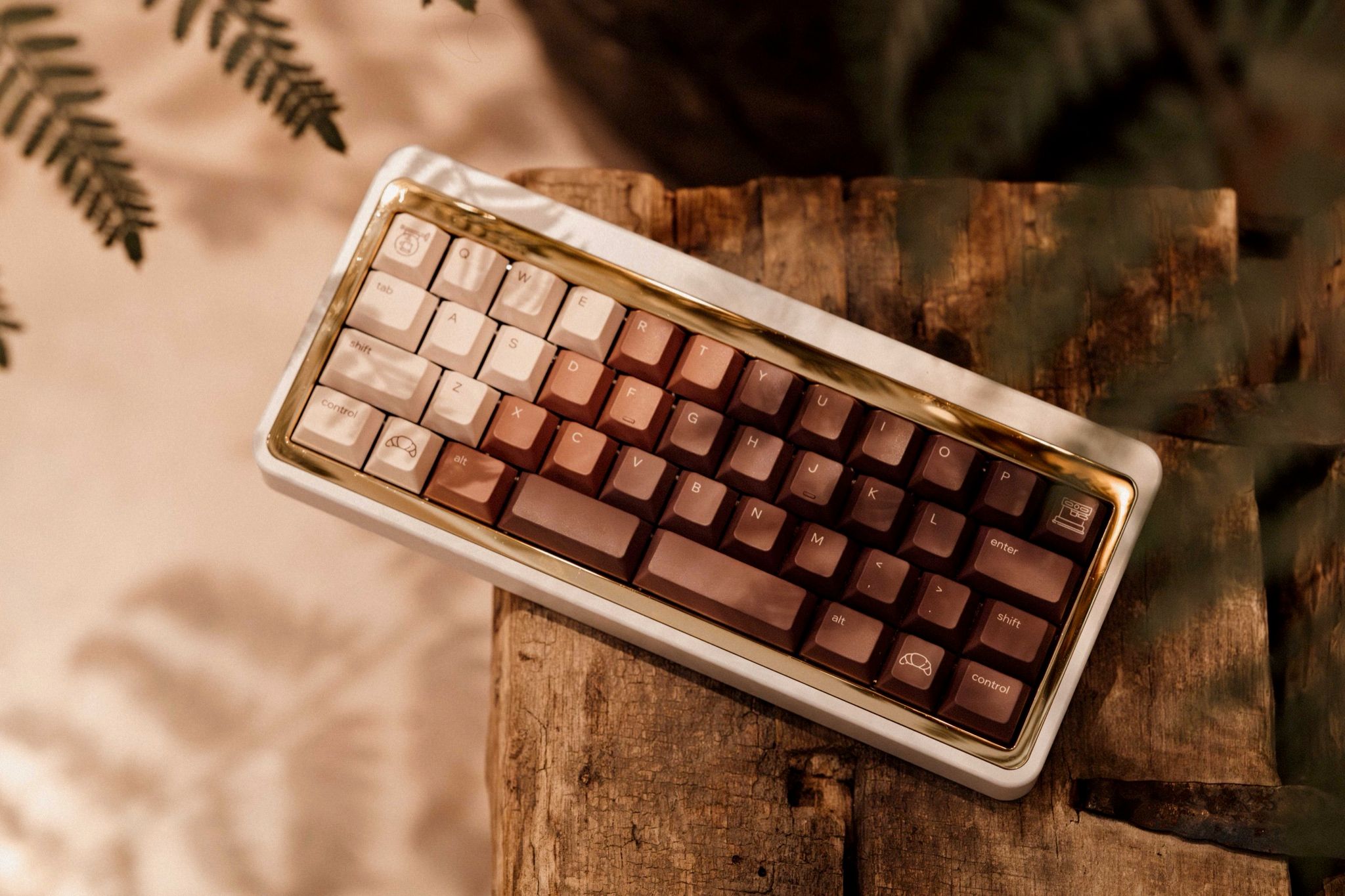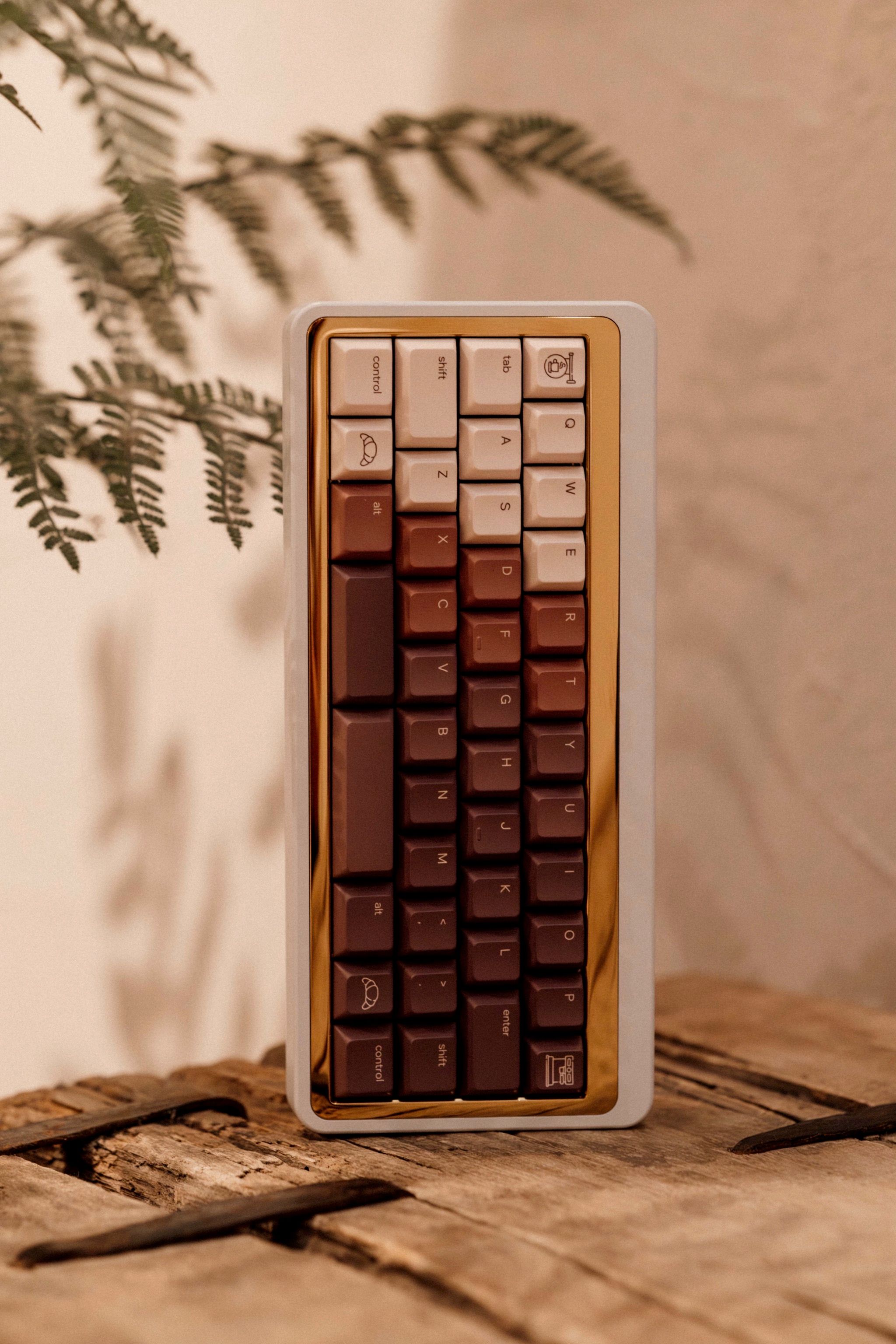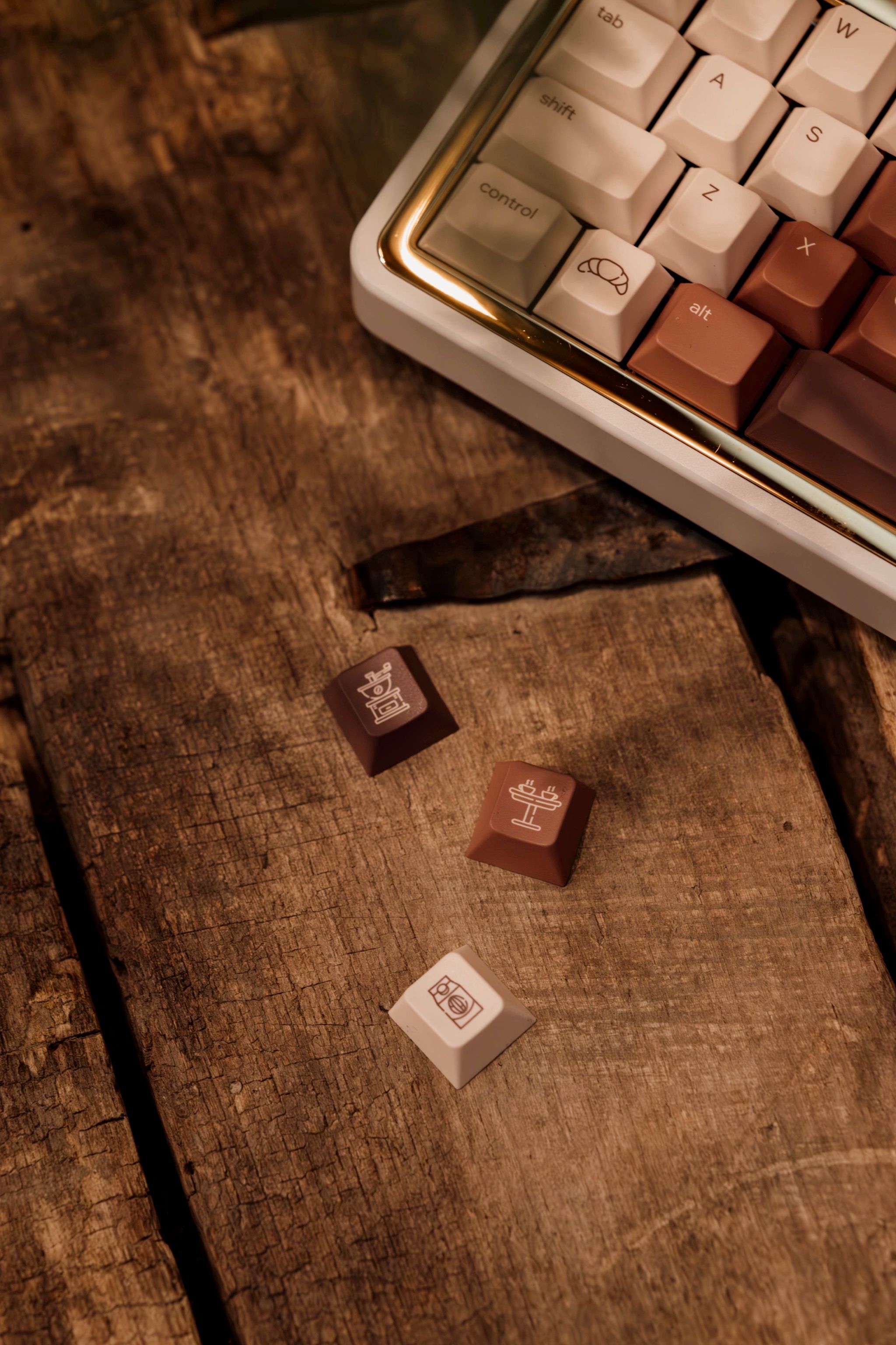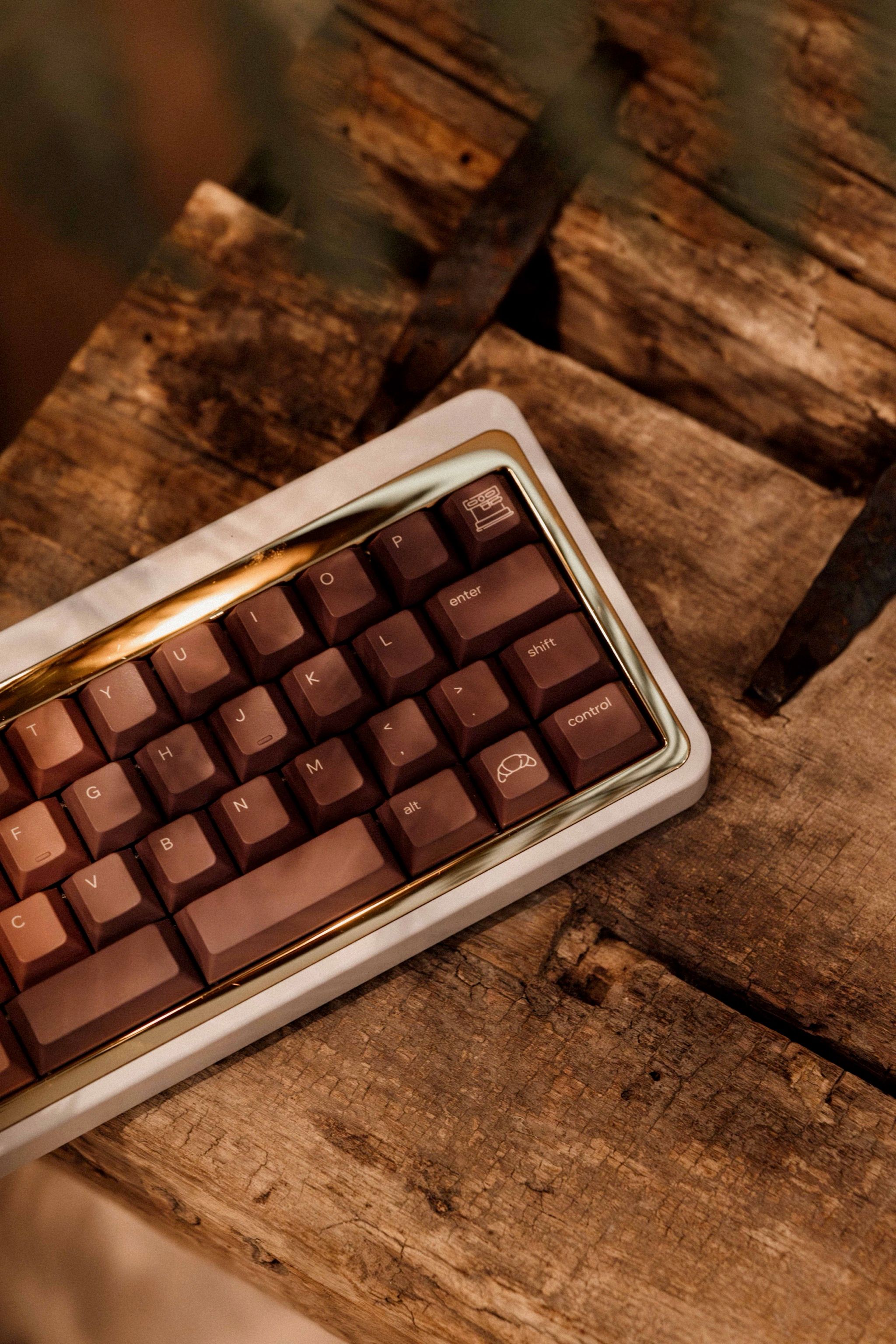 Imagine the aroma of spiced espresso curling through the air, mingling with buttery croissants and dates glazed with honey. A keycap set that evokes the warmth of an old-world café nestled in a souk underneath the palm trees.. With this gradient of soft creams and lush browns, each key captures a note of flavor — from velvety milk to cinnamon-dusted espresso and rich chocolates with an Arabic charm. Novelties like croissants, coffee beans, steaming cups, and other coffee themed options add a charming, café-style touch to your desk.