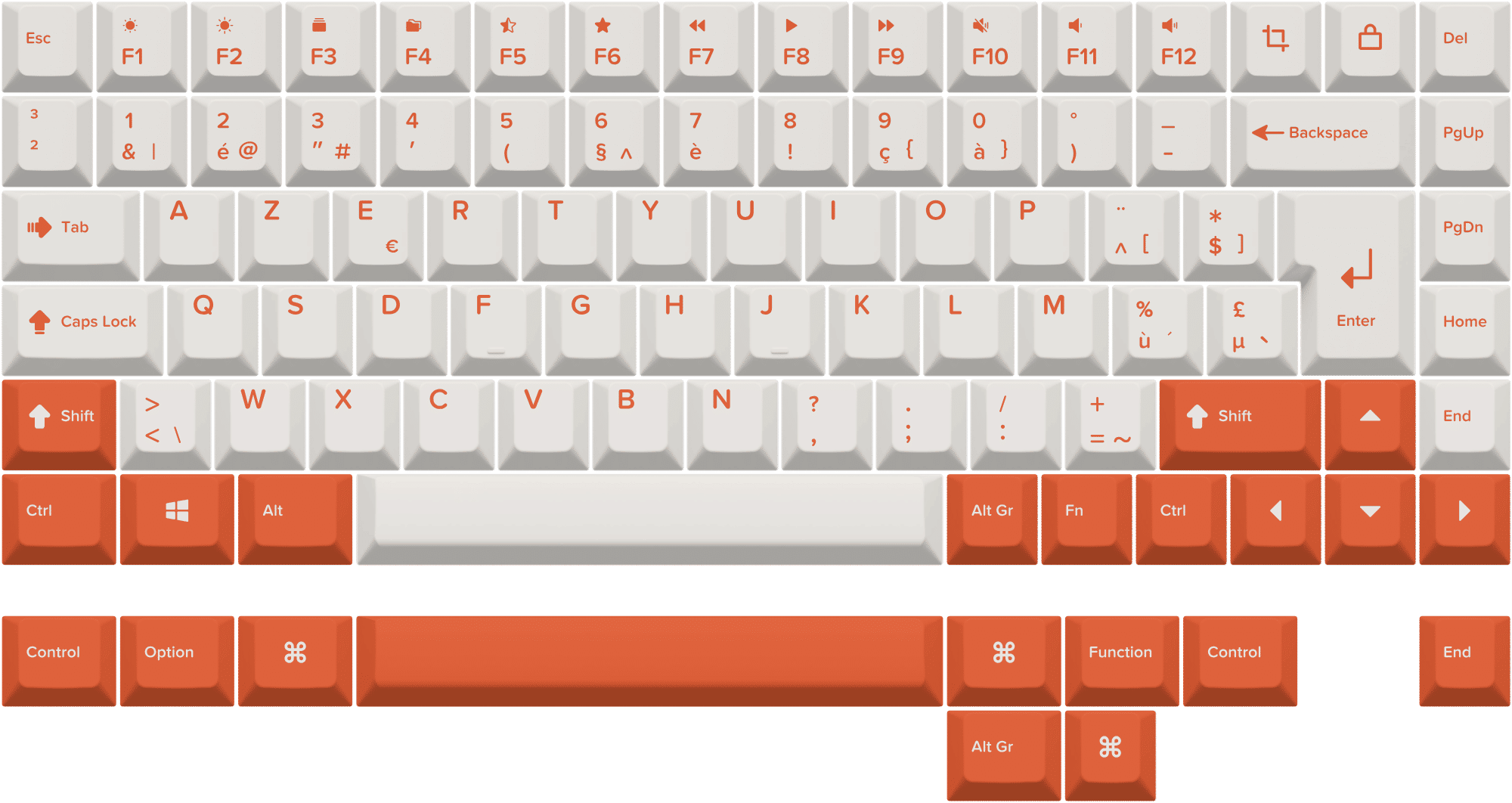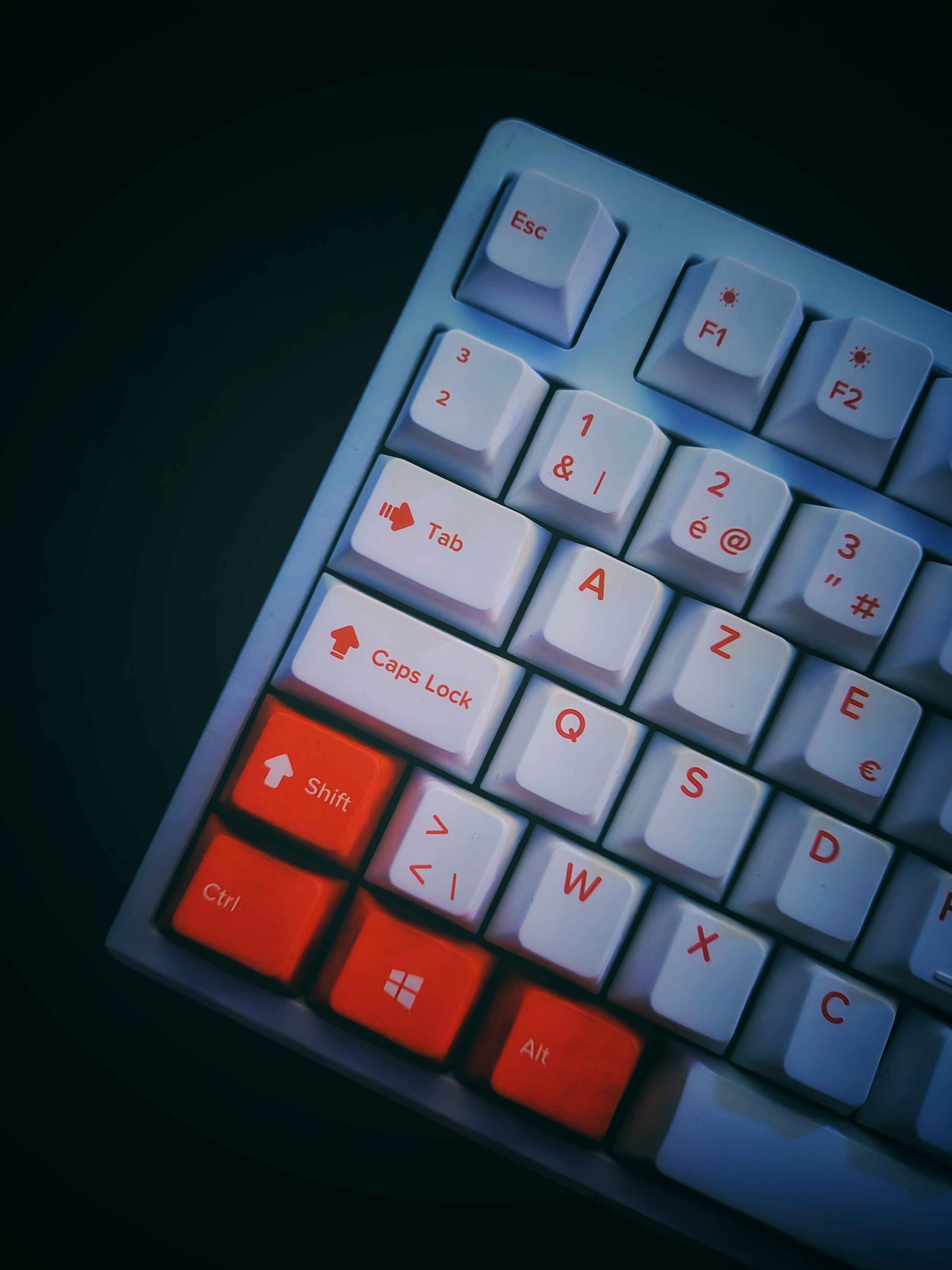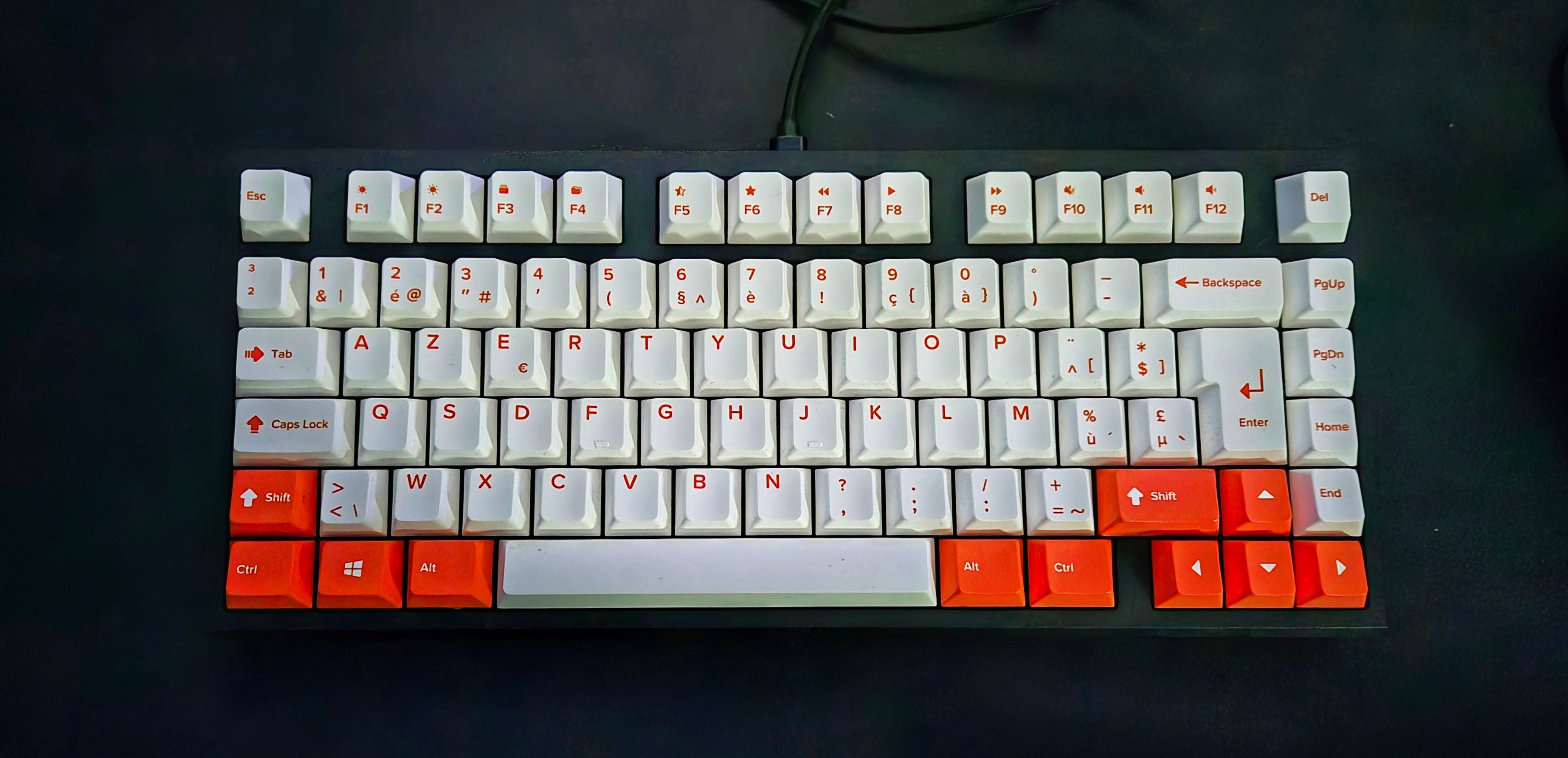 I wanted this set to feel like a balance between calm and spark: something that doesn’t shout all the time, but knows when to stand out. The colours come from what I picture as a fox in winter: bright orange against quiet white, with the deep black of the board (if you use a black case) as the grounding shadow. It leans toward minimalism, but I didn’t want it to feel empty. Therefore, the icons and little details give it some life. For me, it’s a set that feels peaceful to work on, but every so often it catches my eye with a bit of boldness, and that’s exactly what I like about it.