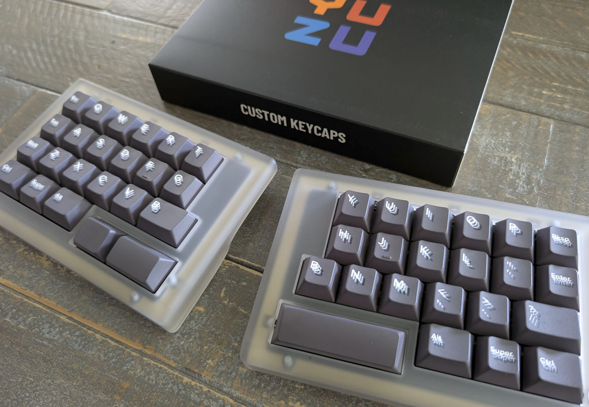 Yuzu's crisp legends stacked on top of each other creates an illusion of blurred letters, forcing you to focus to appreciate the echo. Inspired by shadows, and the inevitability of needing reading glasses to read fine print, this set will make your friends and colleagues do a double take (double take, double take).