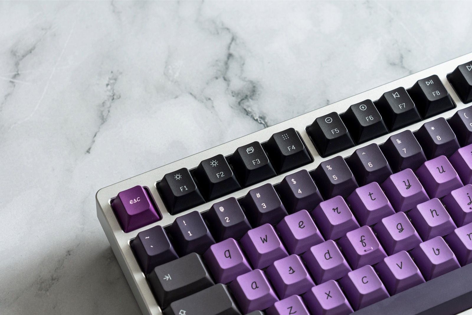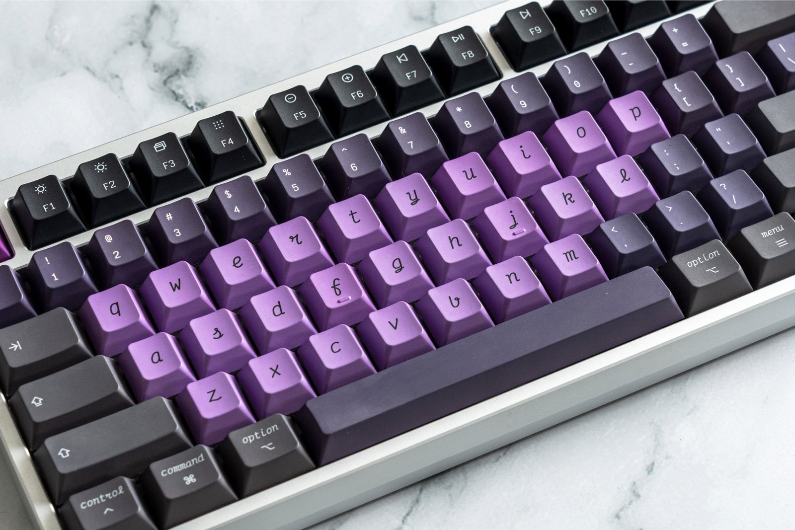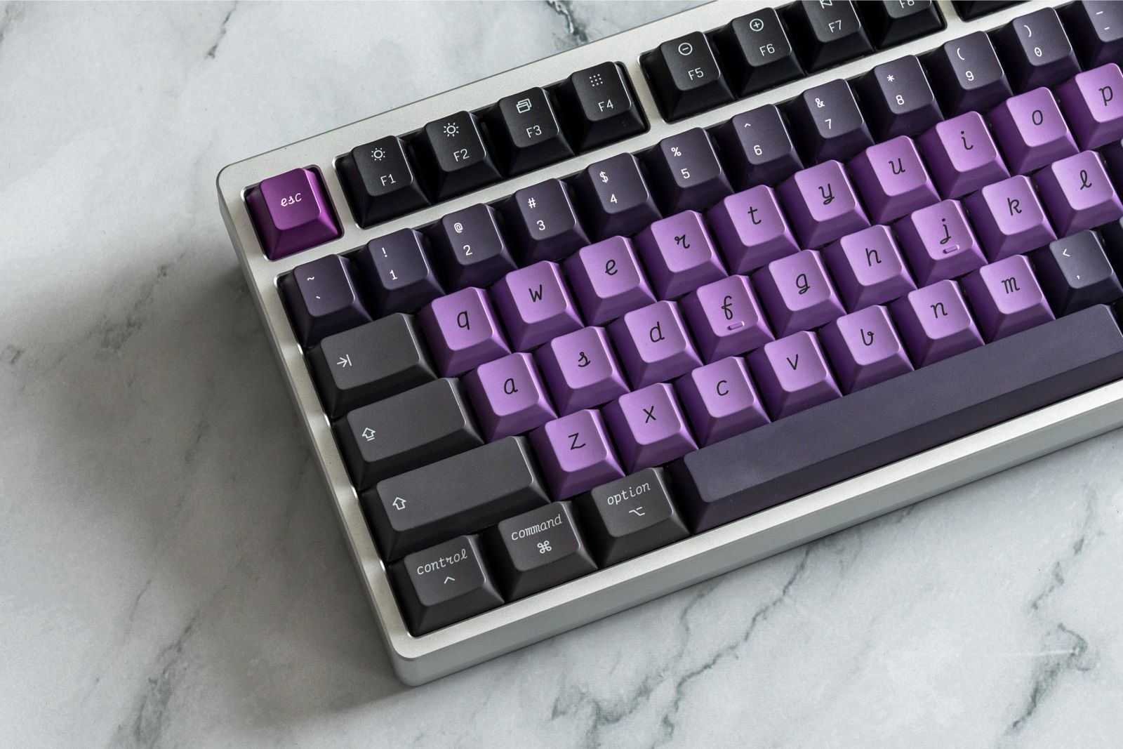 Designed with my own open-source font for programming, Victor Mono (https://rubjo.github.io/victor-mono/). Inspired by the colours of nightshade flowers, featuring prominent letters along with muted purples and greys.