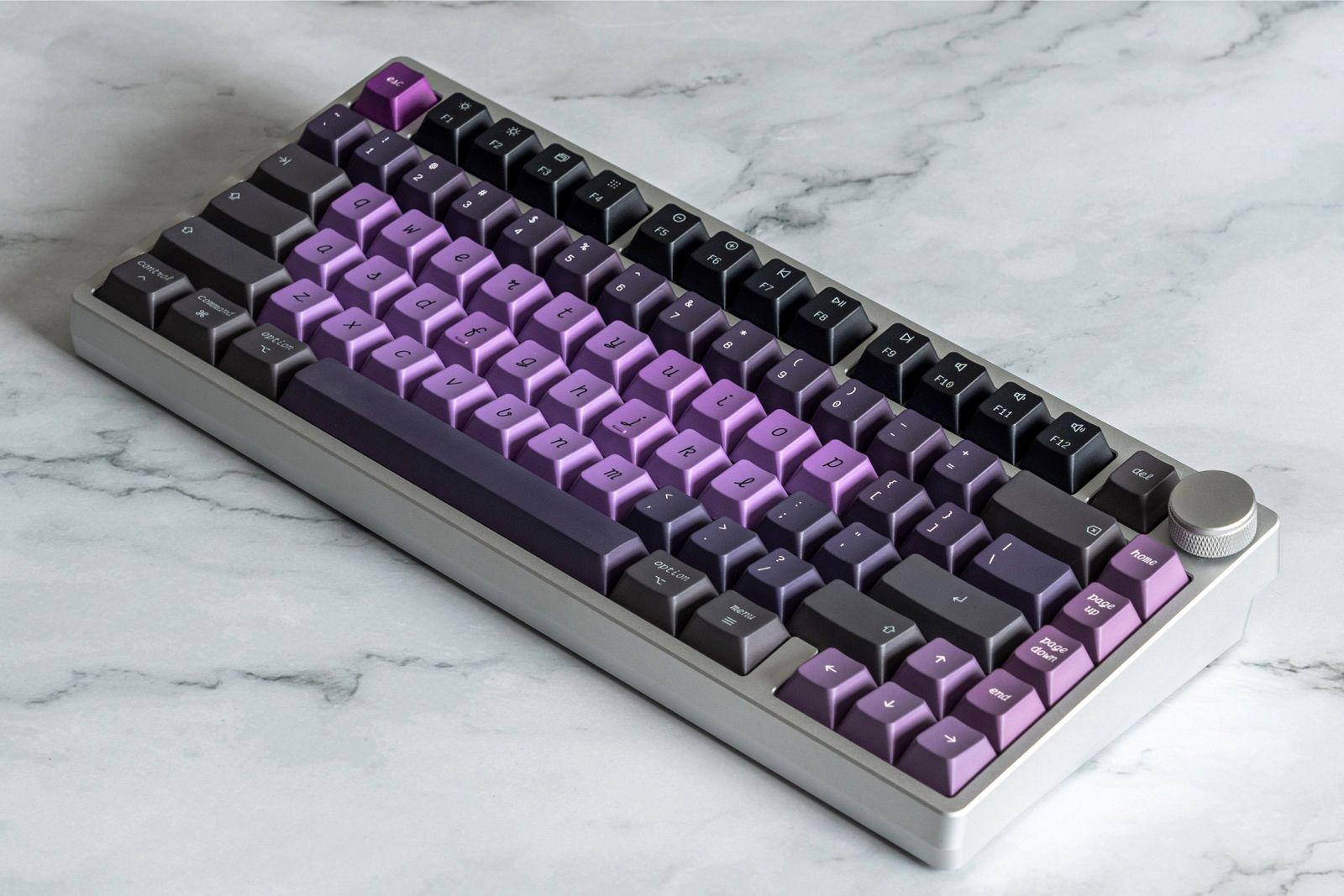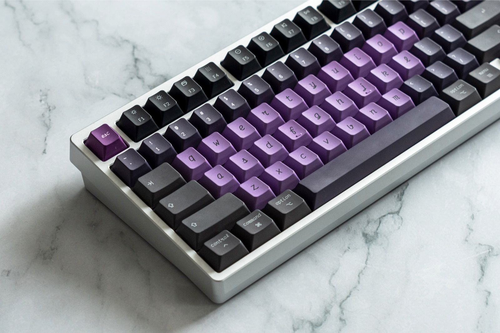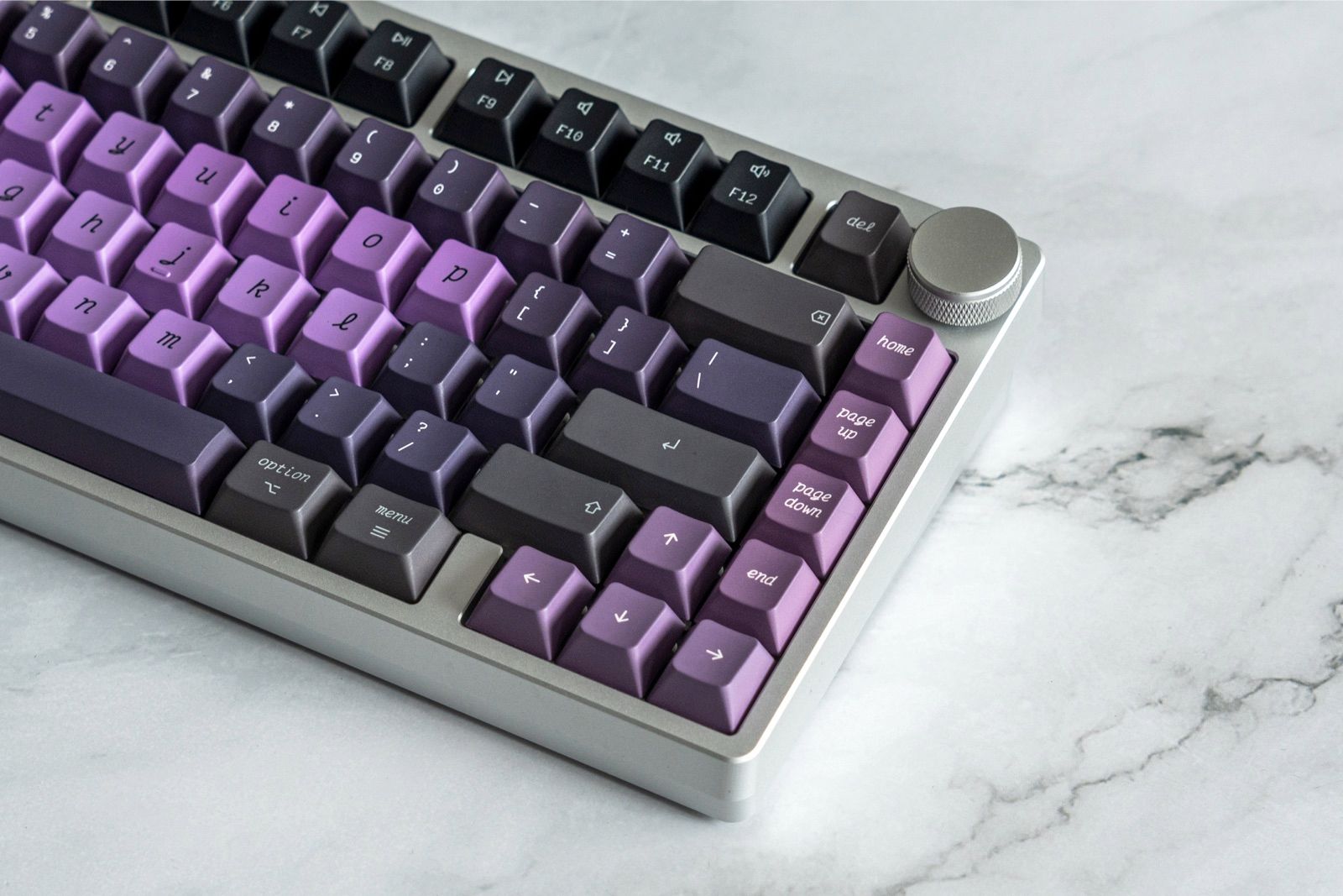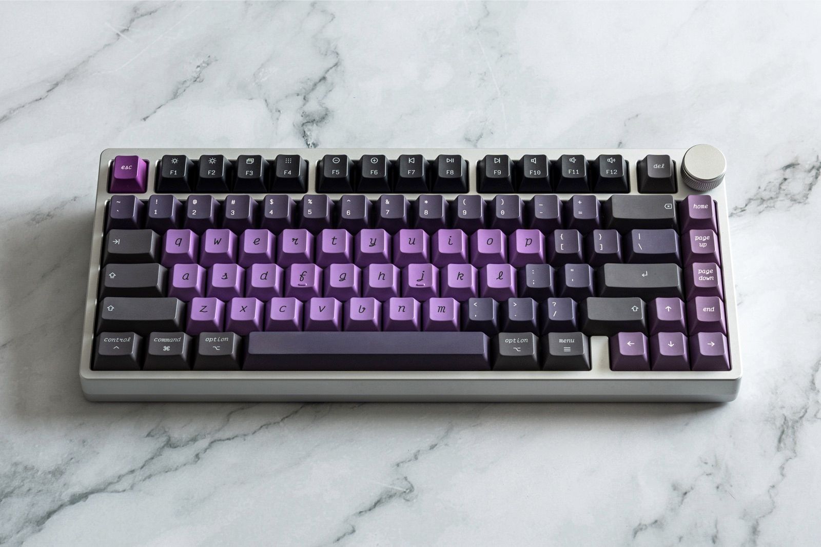 Designed with my own open-source font for programming, Victor Mono (https://rubjo.github.io/victor-mono/). Inspired by the colours of nightshade flowers, featuring prominent letters along with muted purples and greys.